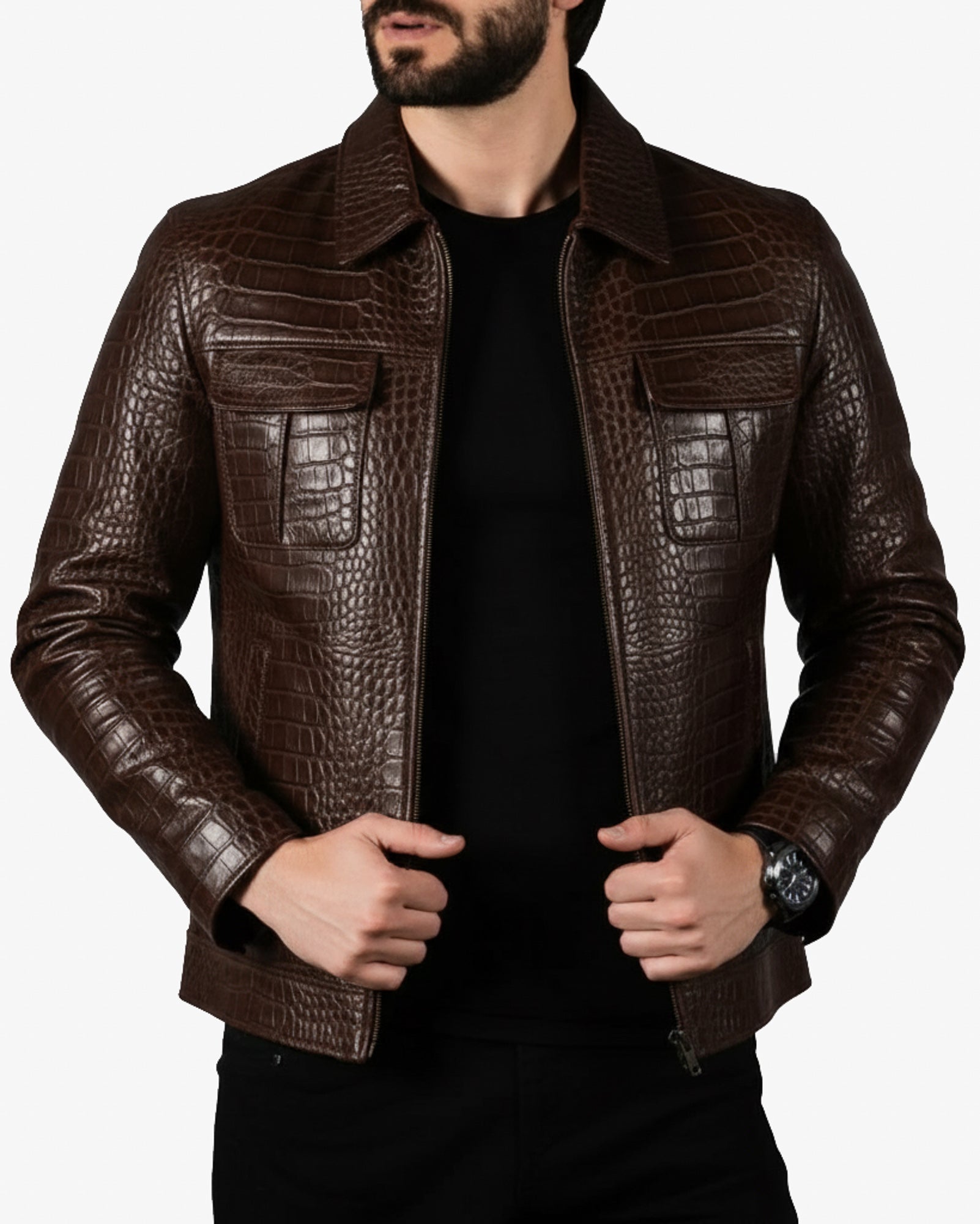 The “Men’s Brown Crocodile-Embossed Leather Jacket” by LEATHER WEAR strikes the perfect balance between rugged and refined. Inspired by the timeless appeal of moto style, this jacket is crafted from 100% lamb leather, known for its buttery softness and lightweight feel. Designed to wear year-round, it’s your go-to piece whether you're dressing up or keeping it casual.