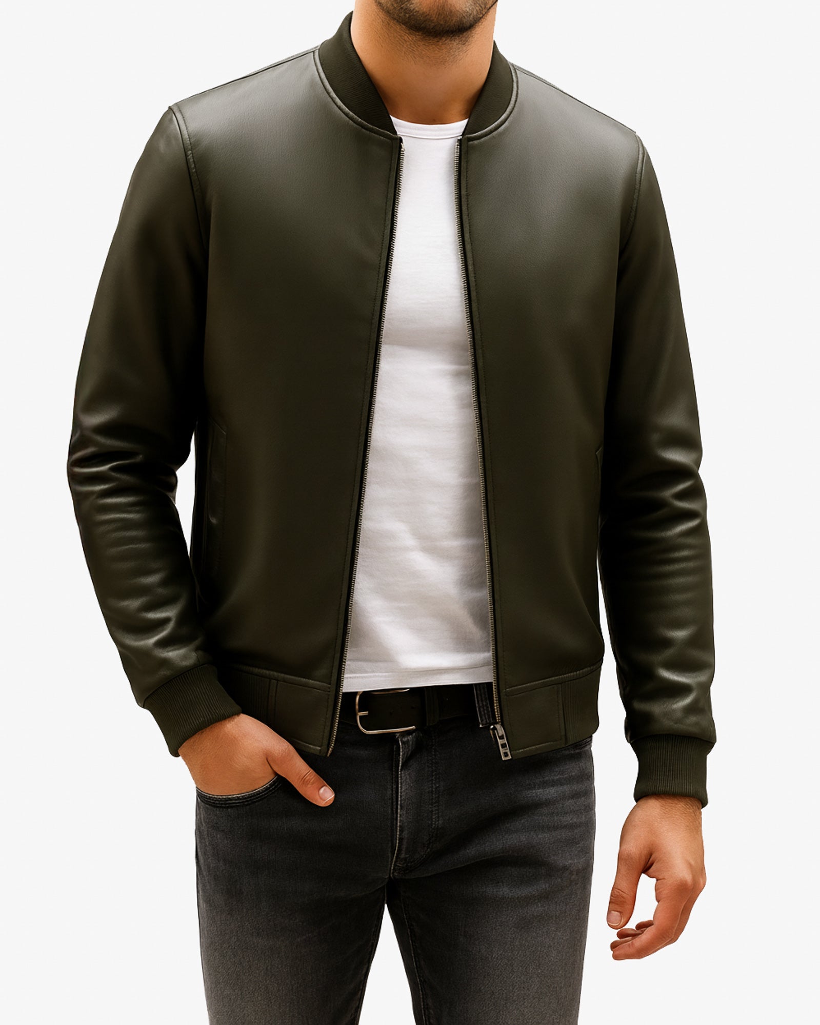 The “Premium Olive Leather Bomber Jacket” by LEATHER WEAR strikes the perfect balance between rugged and refined. Inspired by the timeless appeal of moto style, this jacket is crafted from 100% Cowhide leather, known for its buttery softness and lightweight feel. Designed to wear year-round, it’s your go-to piece whether you're dressing up or keeping it casual.